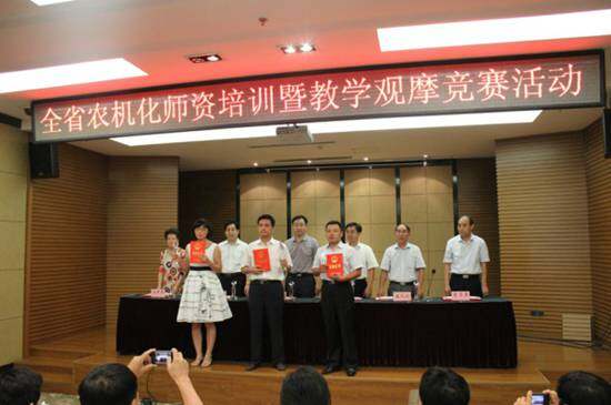 韩永平副局长在讲话中强调,农机系统的教育培训工作者作为农机部门直接为农业、为农村、为农民服务的一支重要力量,是农机现代化的开路先锋。农机校教师的岗位光荣,使命神圣,责任重大,在农机化的发展中,有着很重要的支撑作用;在新机具新技术的推广应用中,有着很重要的引领作用;在知识更新和技能开发中,有着很重要的推动作用;在农机安全生产中,有着很重要的保障作用。广大农机校教师要以这次活动为契机,进一步加强业务理论与实际操作技能的学习研究,不断创新教学方式,提高教学水平,为加速培养造就一支懂技术、会操作、善经营的现代新型职业农机手队伍做出新的更大的贡献。