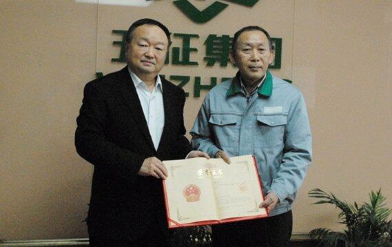 1月29日,五征集团外聘专家安野丰喜获首届“日照友谊奖”,市外国专家局领导为安野丰喜颁奖。